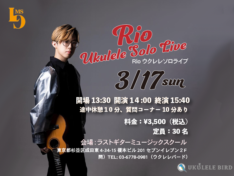 【満員御礼ありがとうございました】Ukulele Bird Presents 「RIO ウクレレソロライブ」