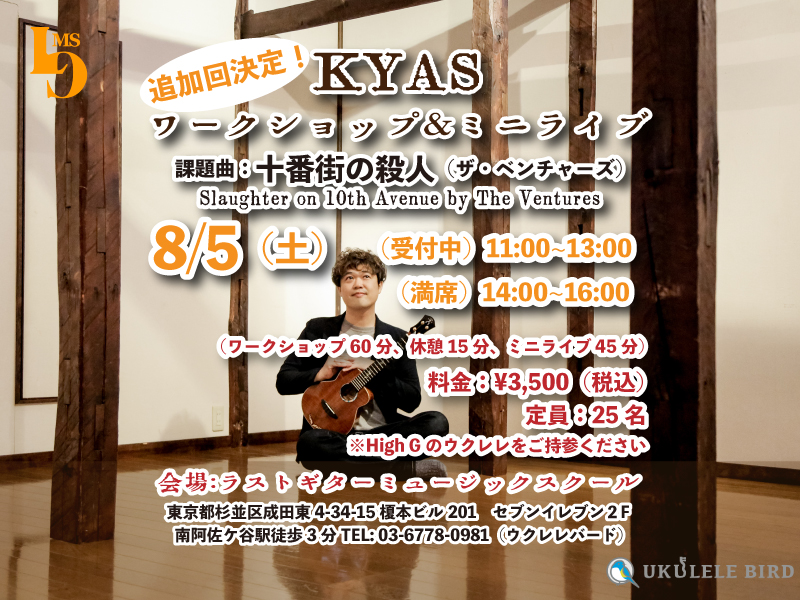 KYAS さんのワークショップ&ミニライブ 追加の回(午前の部)決定!