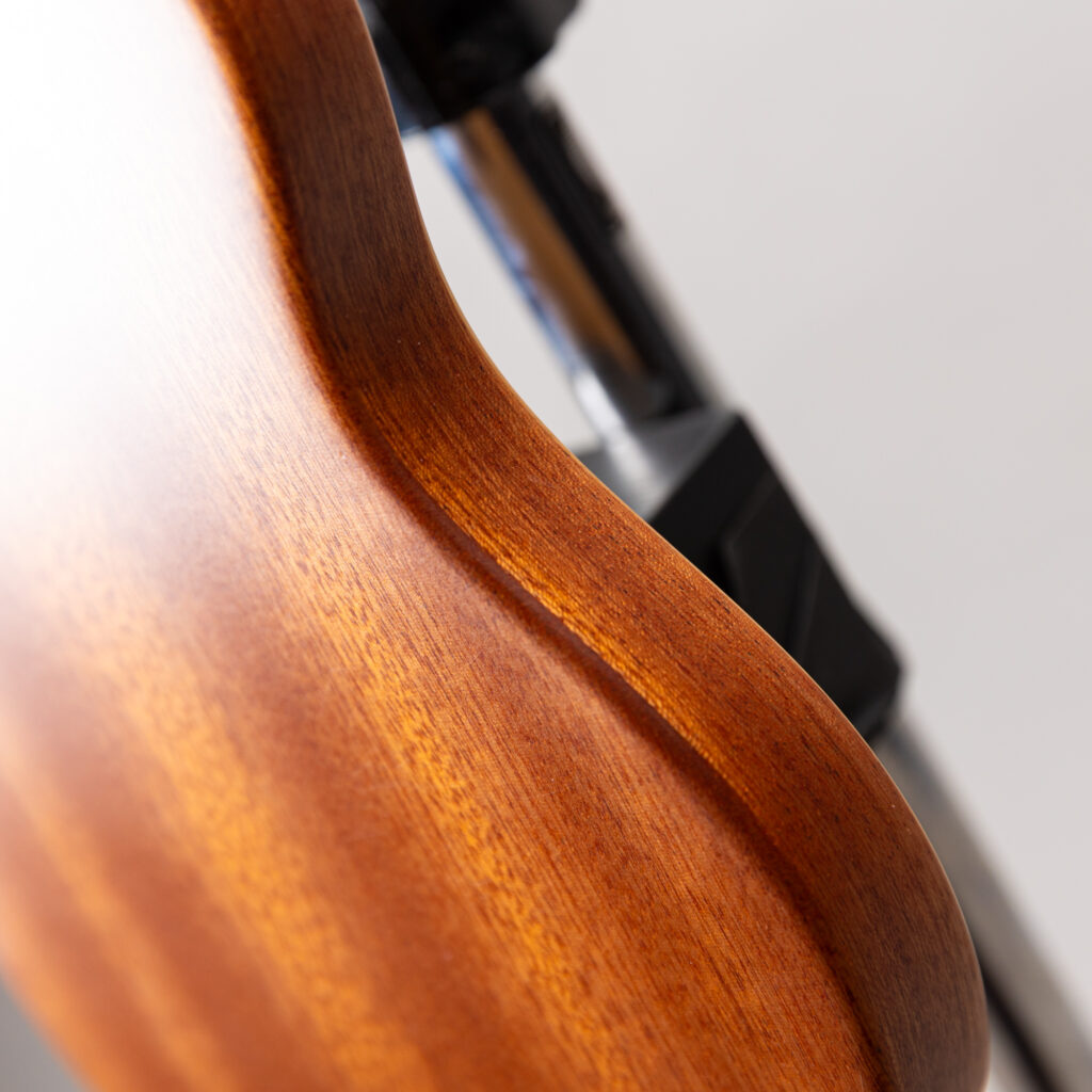トップにスプルース単板、ボディにマホガニー単板を使用し、輪郭のはっきりした音色で、サスティーンも感じられる超薄型のソプラノウクレレです。